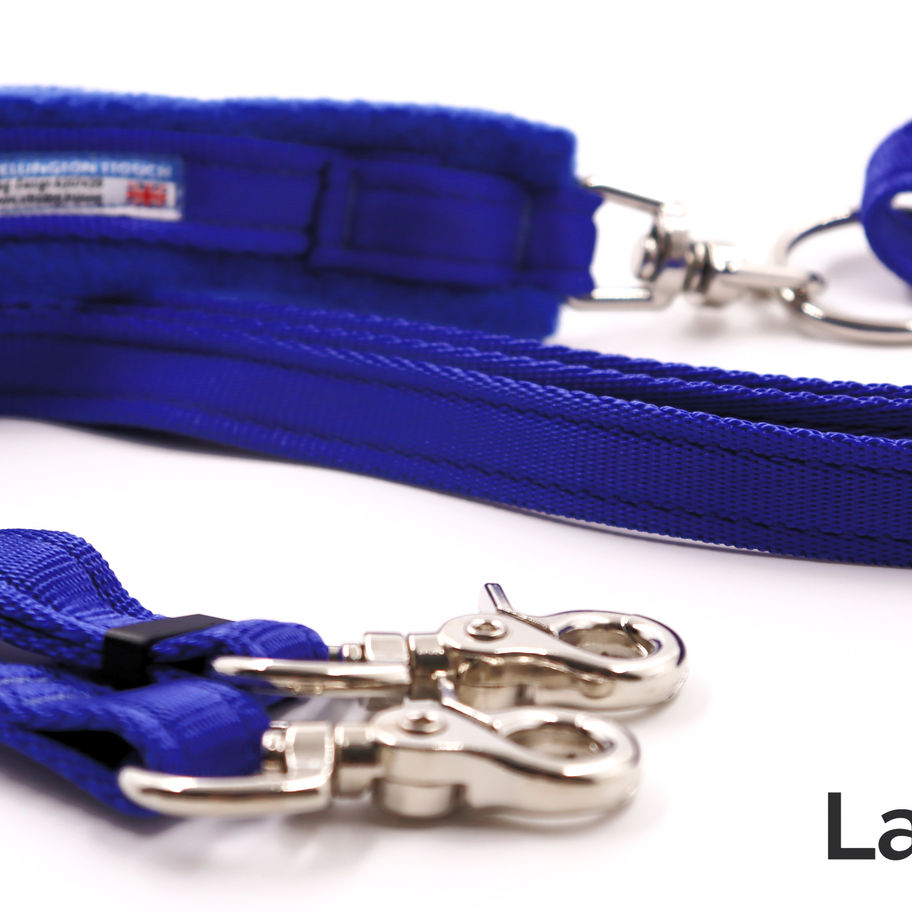 Handmade in the UK, this lead is constructed with fleece on one side and durable webbing on the other, providing strength and comfort for you and your dog. It comes in two sizes: a wide gauge with one large and one small clip and a narrow gauge with two small clips.